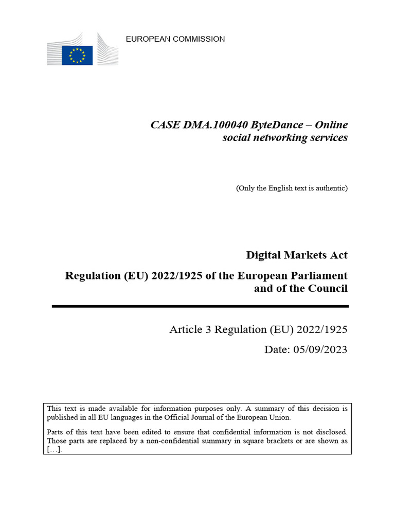 ByteDance is designated as a gatekeeper pursuant to Article 3 of Regulation (EU) 2022/1925.