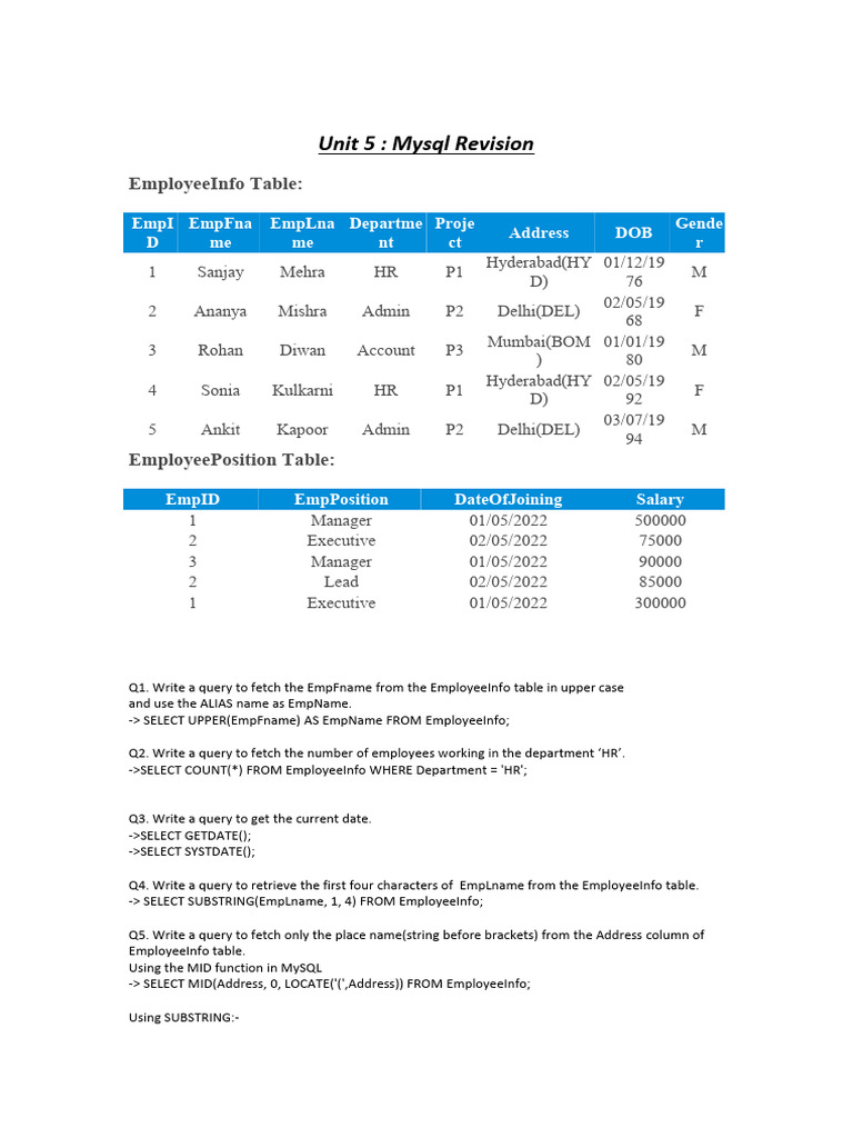 -> SELECT UPPER(EmpFname) AS EmpName FROM EmployeeInfo;