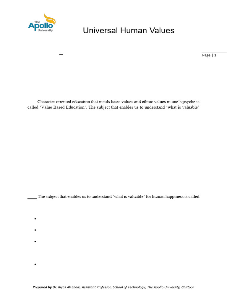 Unit – 1: Human Values and Professional Ethics Page | 1