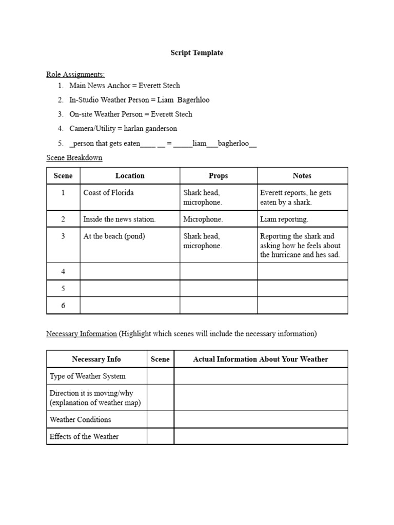 (camera turns on): bar on the bottom of the screen says (Liam) “Breaking news, Florida is