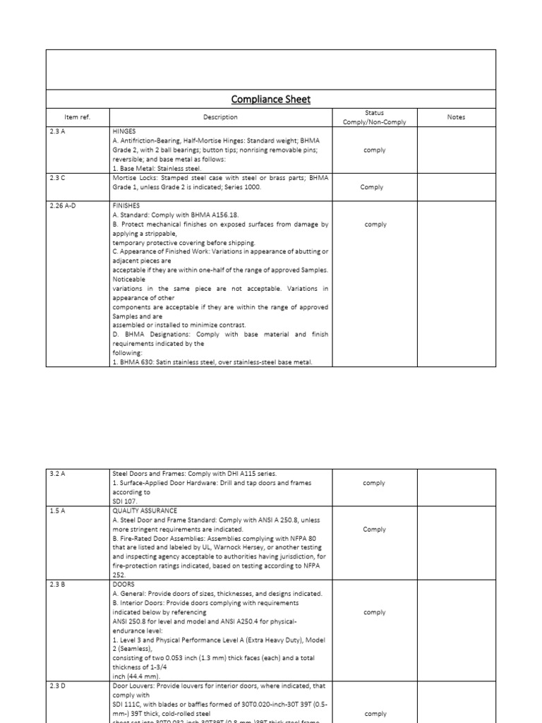 3.2 A Steel Doors and Frames: Comply with DHI A115 series.