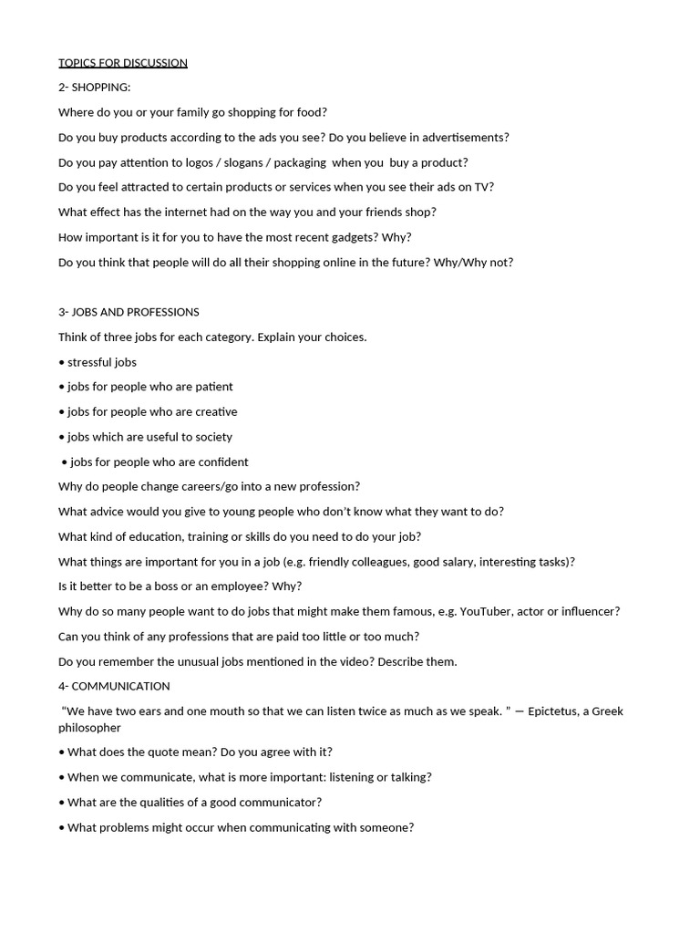 TOPICS FOR DISCUSSION