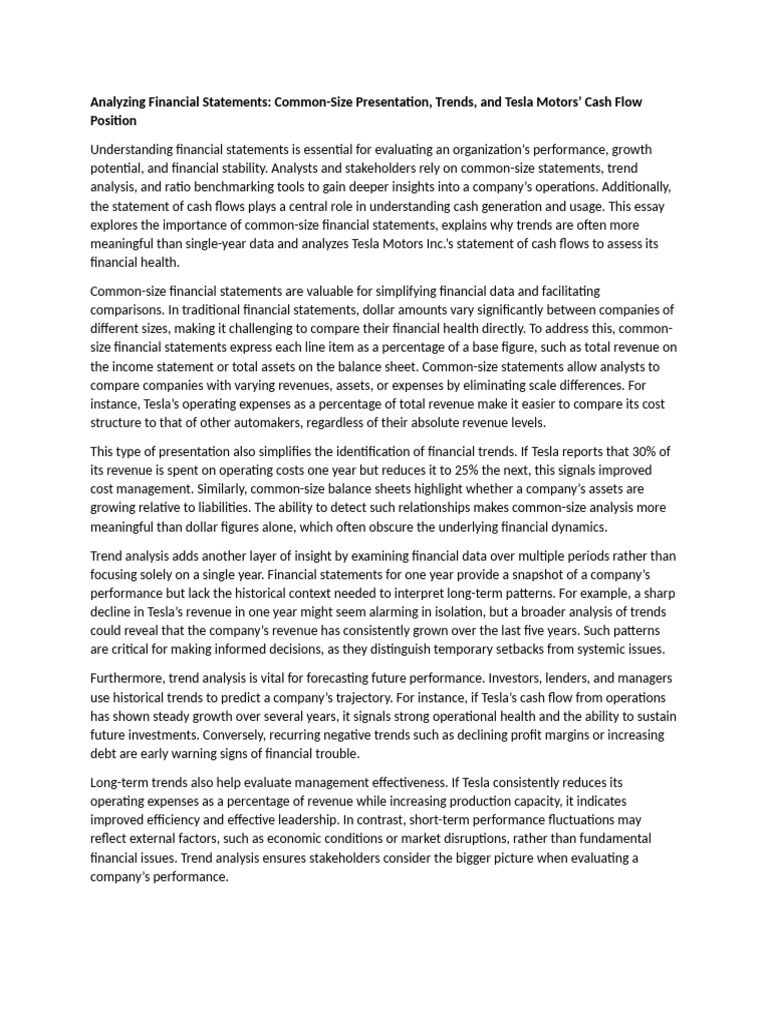 Analyzing Financial Statements: Common-Size Presentation, Trends, and Tesla Motors’ Cash Flow