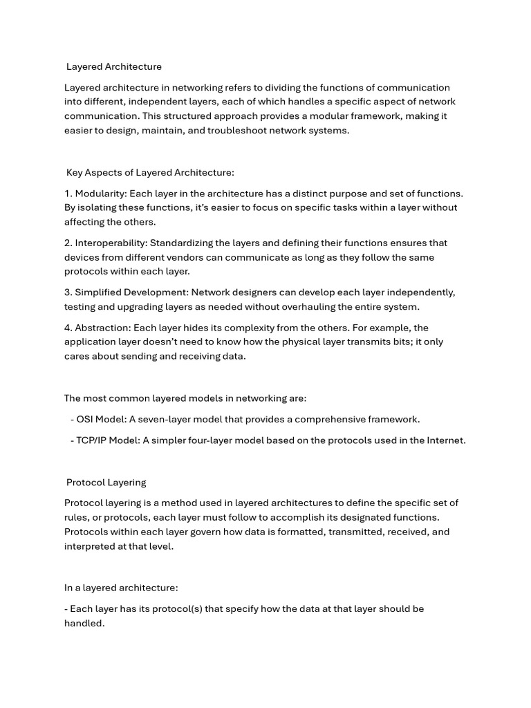 - Layered protocols depend on each other in a hierarchical manner, where each layer