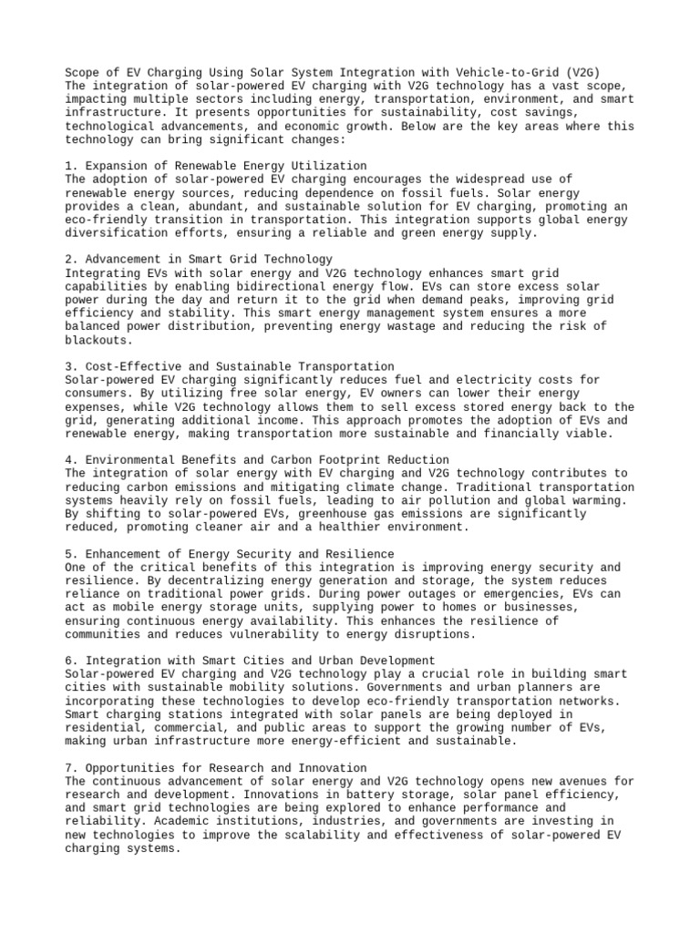 The integration of solar-powered EV charging with V2G technology has a vast scope,
