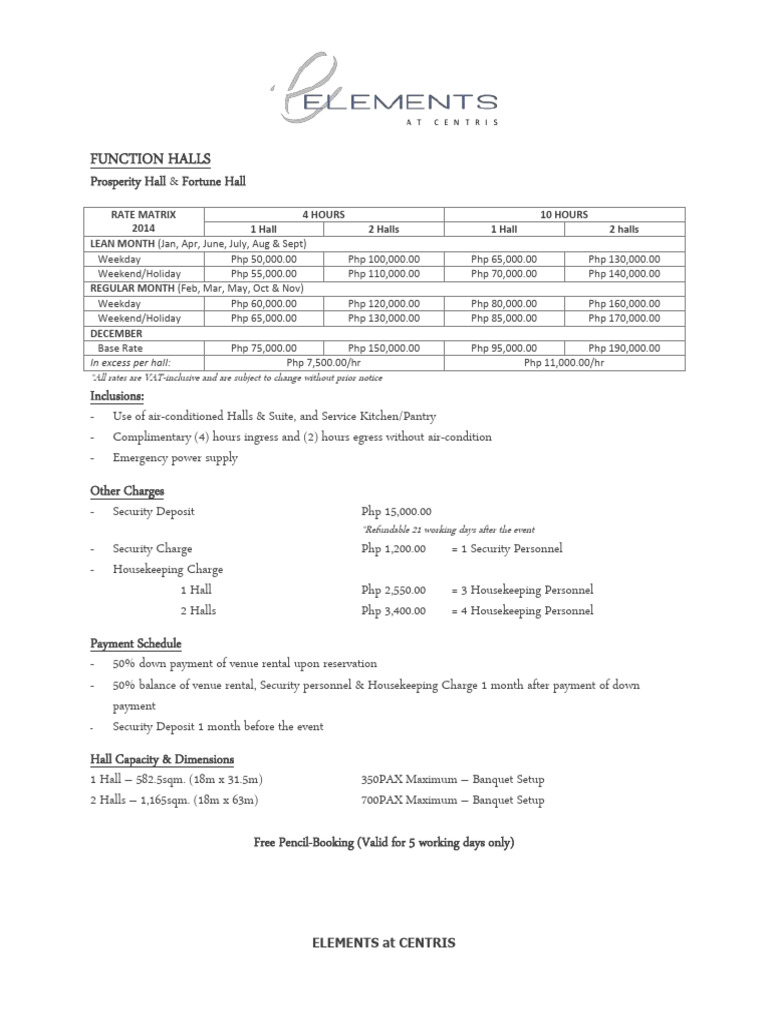 In excess per hall: Php 7,500.00/hr Php 11,000.00/hr
