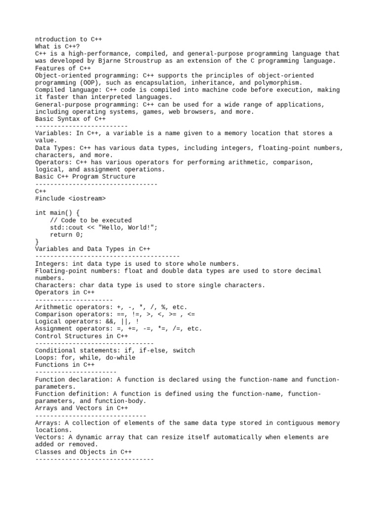 Data Types: C++ has various data types, including integers, floating-point numbers,