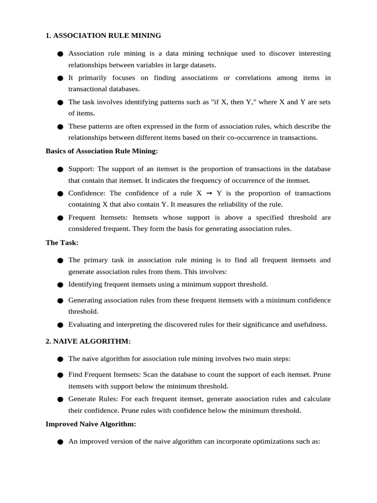● Pruning Strategies: Apply pruning techniques like the Apriori property to reduce the