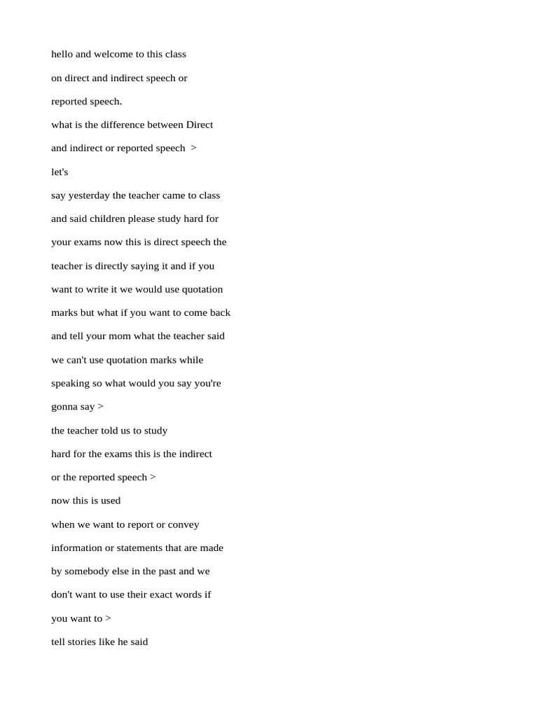 and indirect or reported speech >