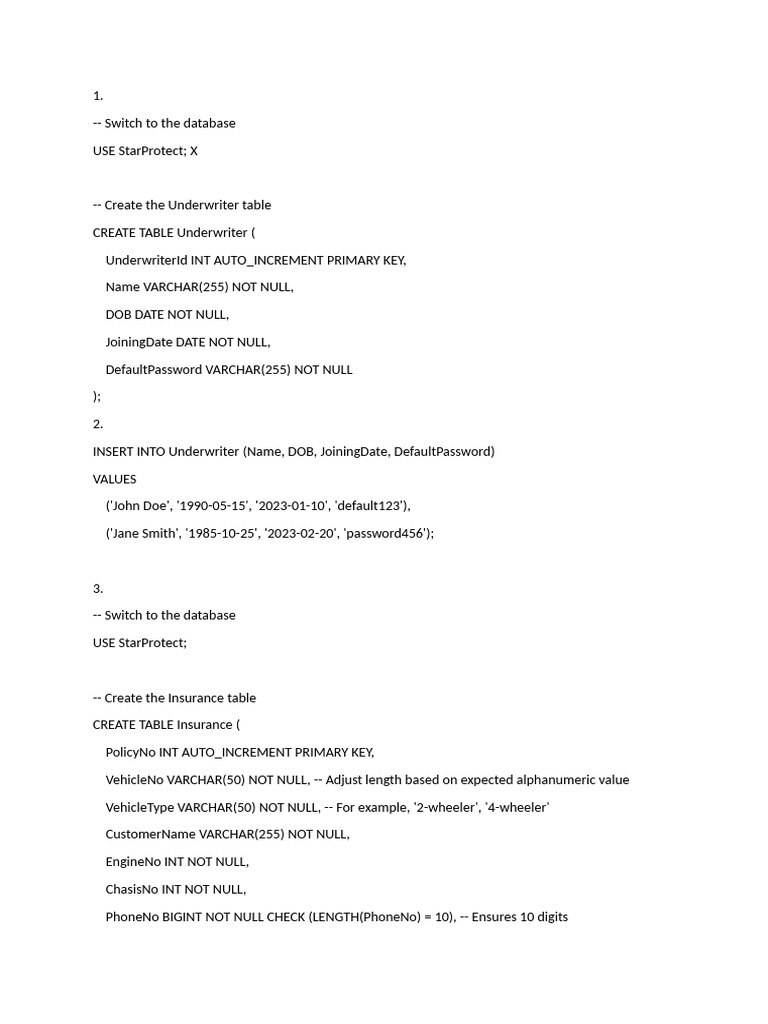 CREATE TABLE Insurance (