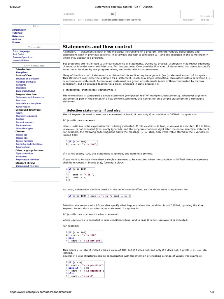 https://www.cplusplus.com/doc/tutorial/control/ 1/5