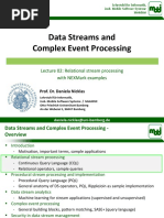 This talk: relation-oriented DSMS. Specically, TelegraphCQ, AmInsight, StreamBase, . . .