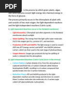 o Light energy is absorbed by chlorophyll and used to split water molecules