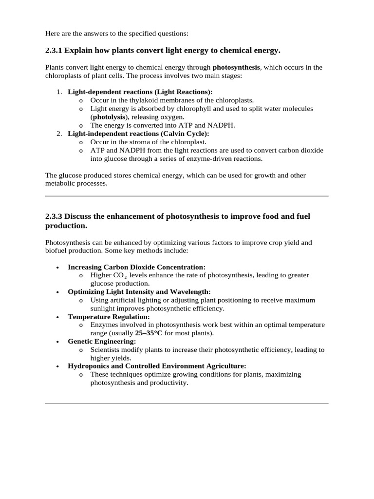 2.3.3 Discuss the enhancement of photosynthesis to improve food and fuel