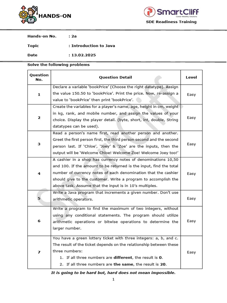 1 the value 150.50 to ‘bookPrice’. Print the price. Now, re-assign a Easy