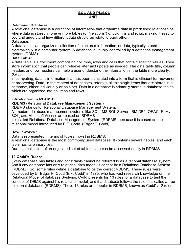 Introduction to RDBMS: