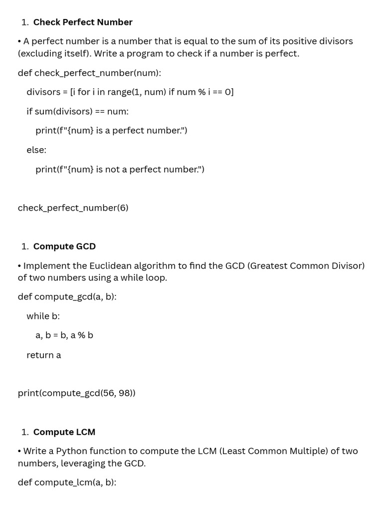 • Implement the Euclidean algorithm to find the GCD (Greatest Common Divisor)