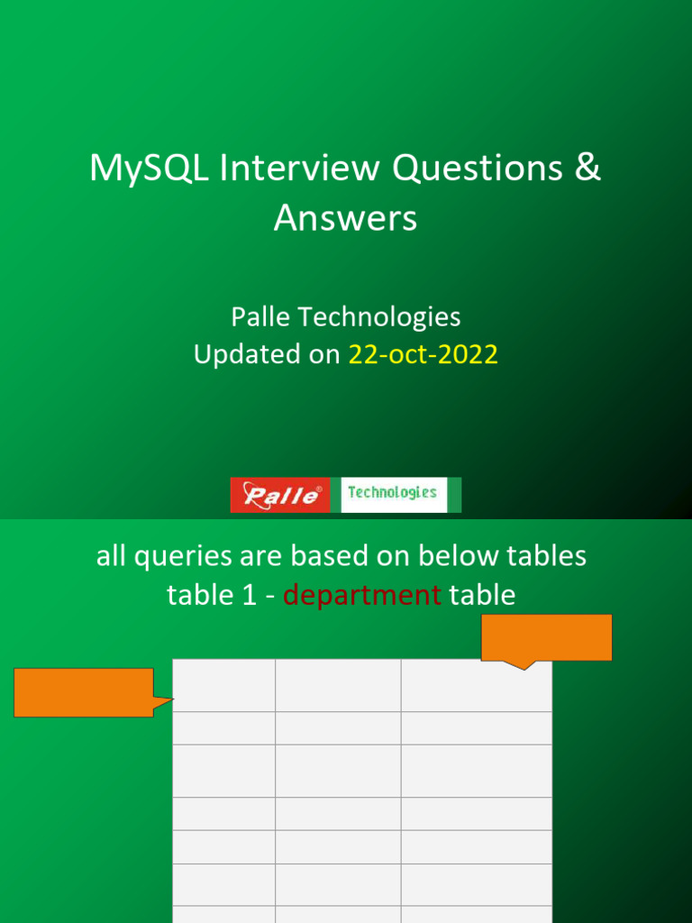 MySQL Interview Questions &