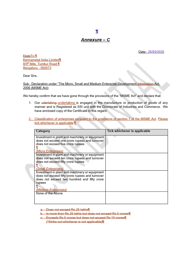 Sub: Declaration under “The Micro, Small and Medium Enterprise Development Information Act,