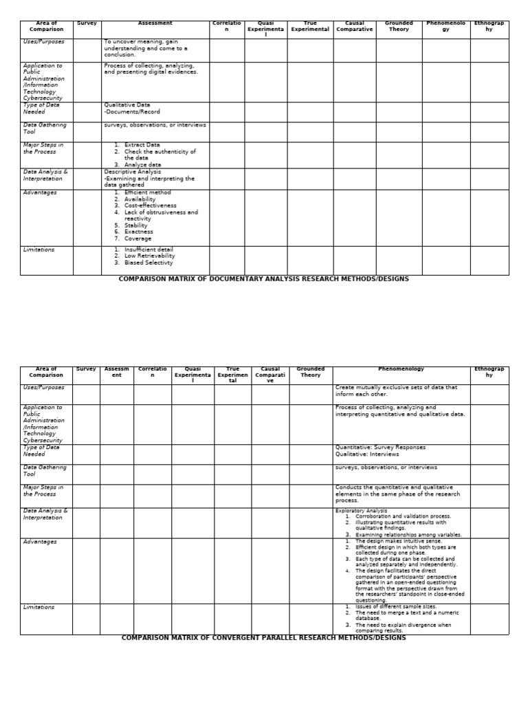 COMPARISON MATRIX OF CONVERGENT PARALLEL RESEARCH METHODS/DESIGNS
