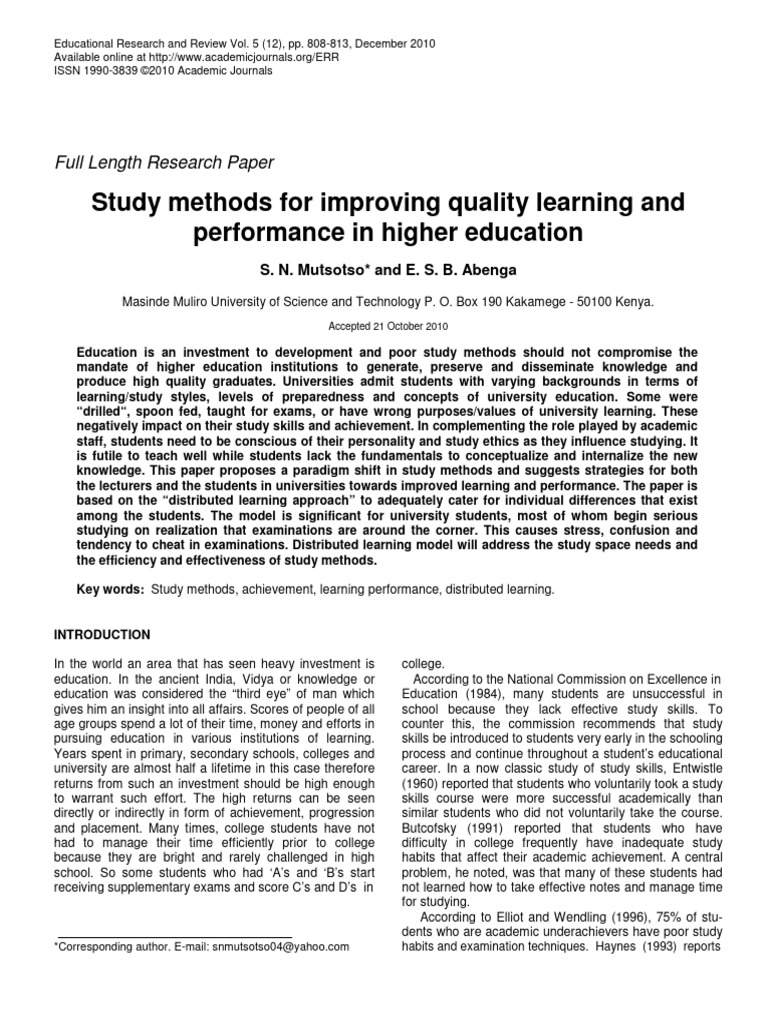 Hu S, Kuh GD (2002). Being (Dis)Engaged in Educationally Purposeful remembering: study skills across the curriculum. An NEA