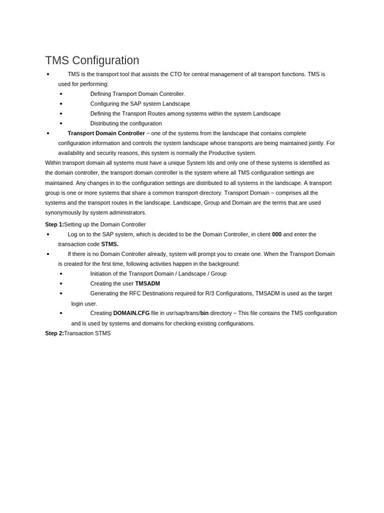Creating DOMAIN.CFG file in usr/sap/trans/bin directory – This file contains the TMS configuration