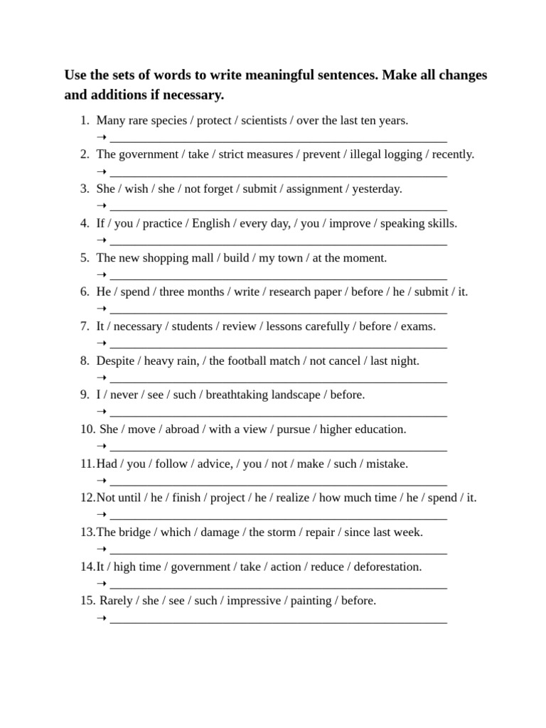 20. Hardly / she / enter / the room / when / the phone / ring.