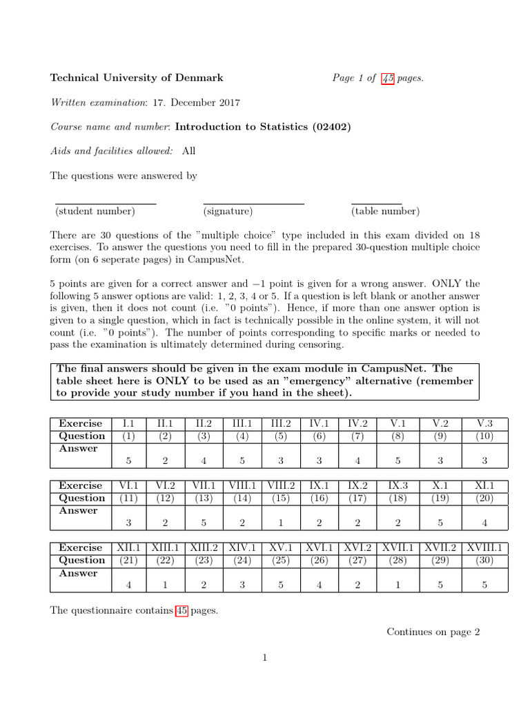 There are 30 questions of the ”multiple choice” type included in this exam divided on 18