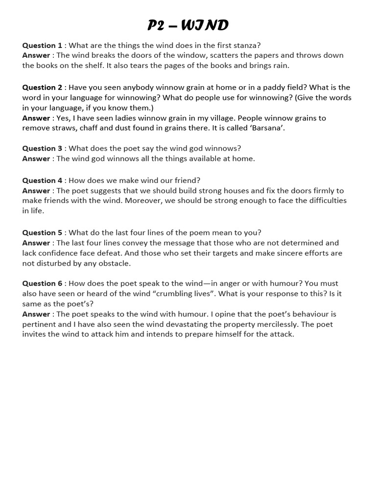 Question 6 : How does the poet speak to the wind—in anger or with humour? You must