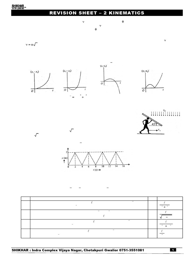 1. A ball is thrown from a point with a speed 0 at an elevation of angle . From the same point and at the same