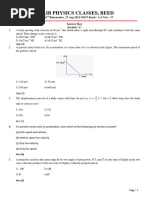 2. A particle located at x = 0 at time t = 0 starts moving along the positive x-direction with a velocity that varies