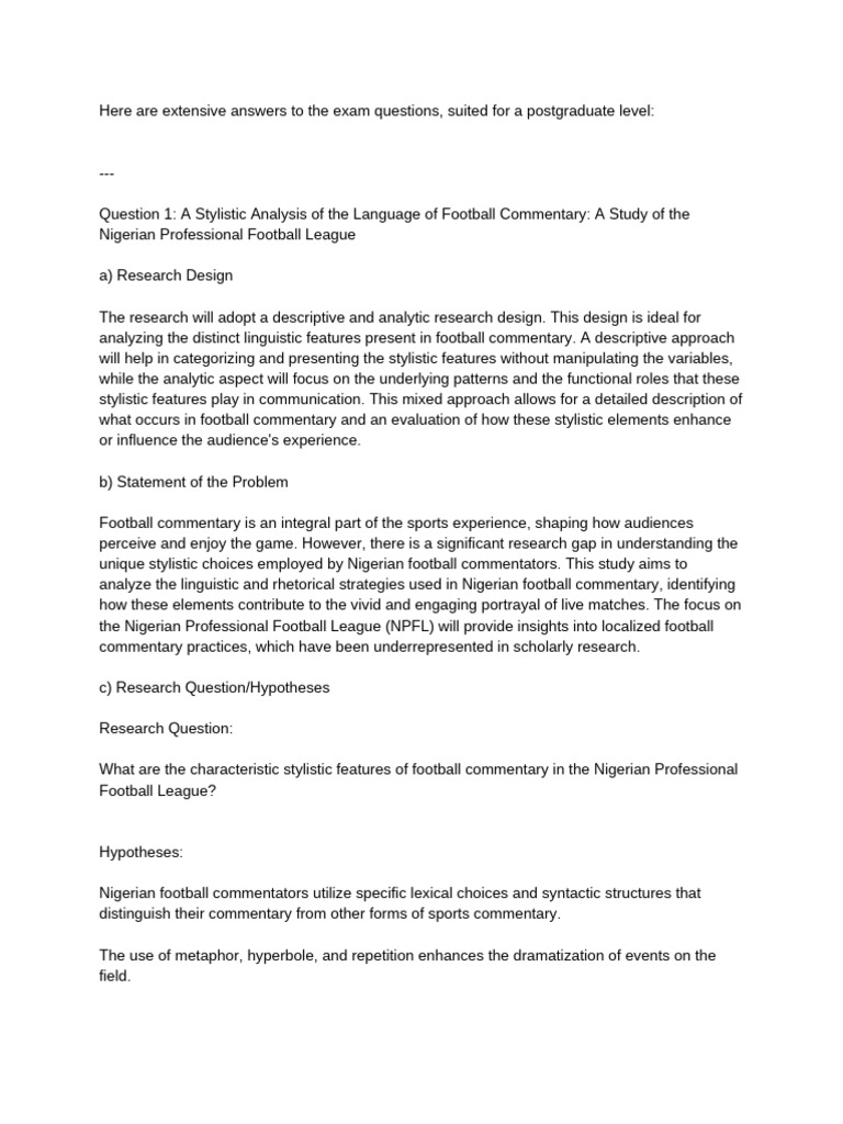 Question 1: A Stylistic Analysis of the Language of Football Commentary: A Study of the