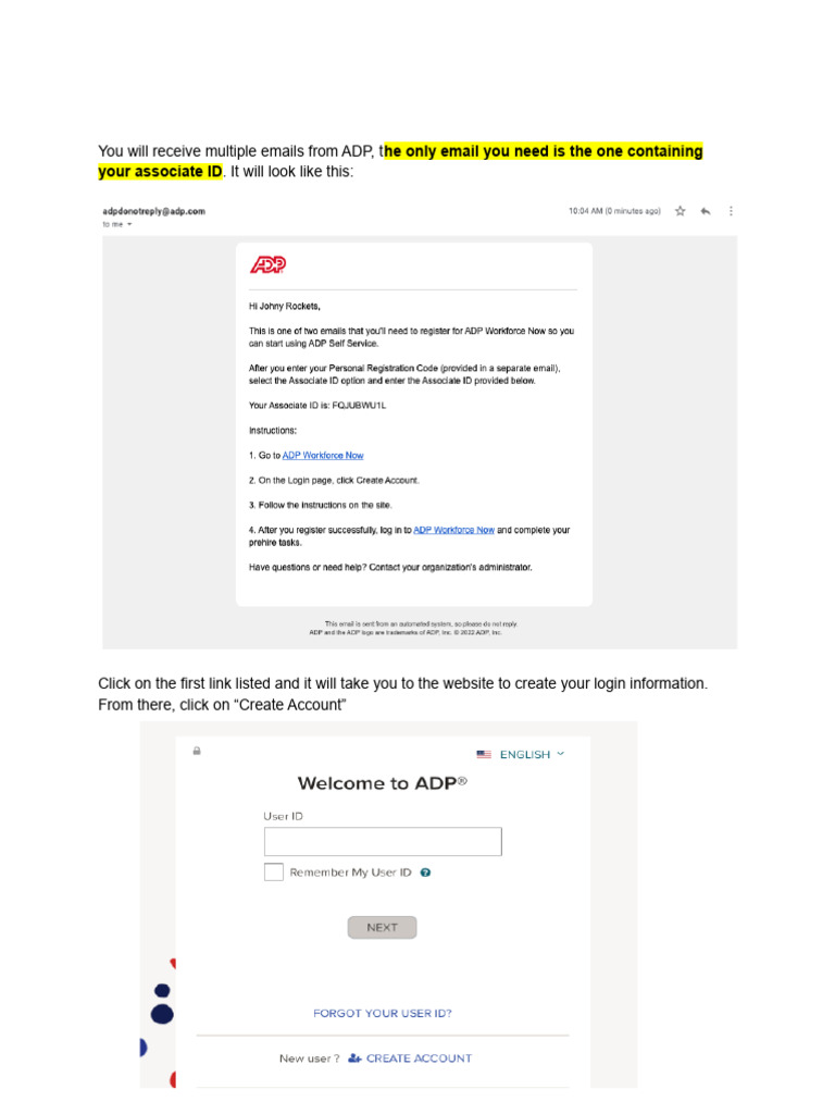 You will receive multiple emails from ADP, the only email you need is the one containing