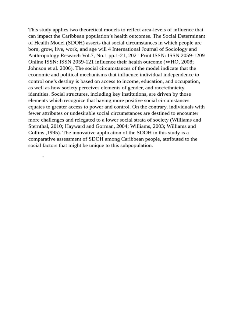 can impact the Caribbean population’s health outcomes. The Social Determinant