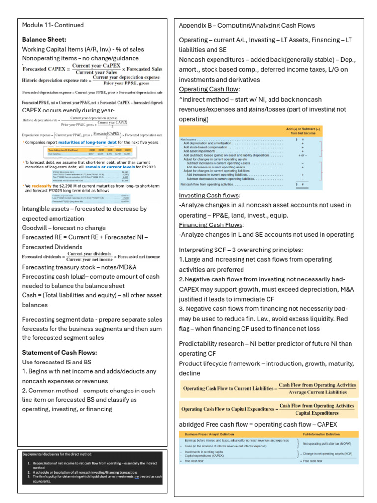 Forecasting cash (plug)– compute amount of cash 2.Negative cash flows from investing not necessarily bad-