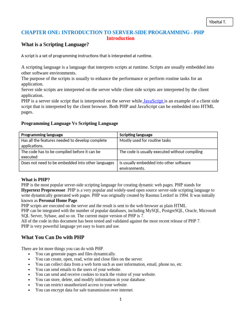 Chapter 1-Introduction To Server-Side Programming - PHP