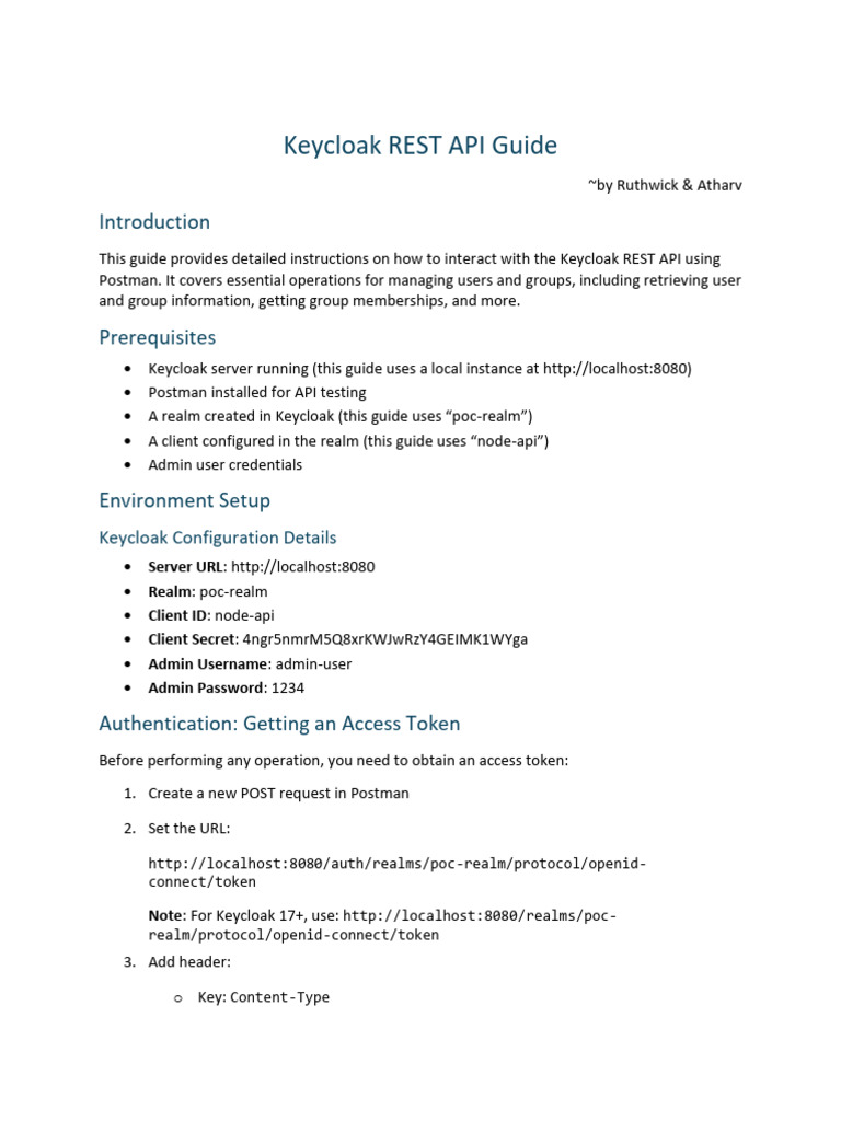 This guide provides detailed instructions on how to interact with the Keycloak REST API using