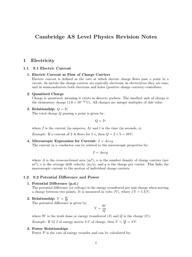 These Cambridge AS Level Physics notes cover key topics in Electricity and D.C. Circuits,