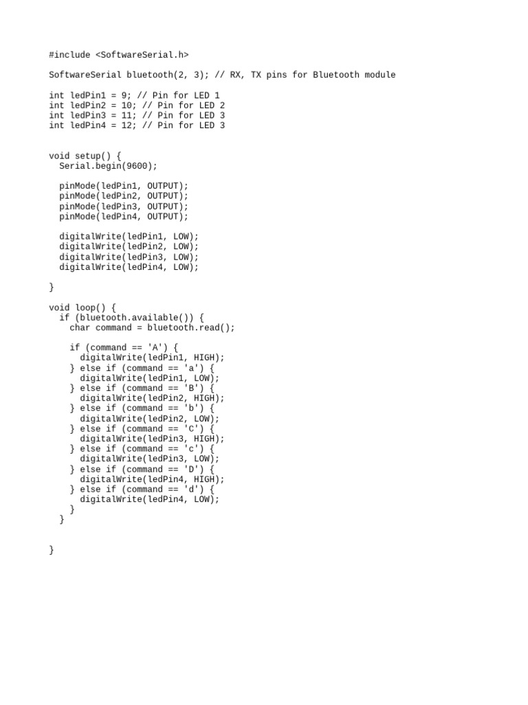 SoftwareSerial bluetooth(2, 3); // RX, TX pins for Bluetooth module