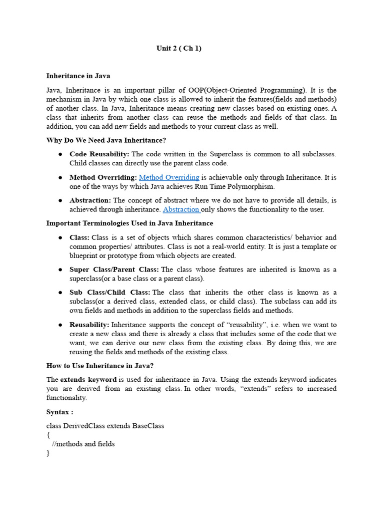 ● Reusability: Inheritance supports the concept of “reusability”, i.e. when we want to