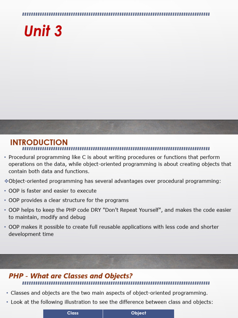 any software. To overcome this problem, object-oriented programming in PHP uses the concept of