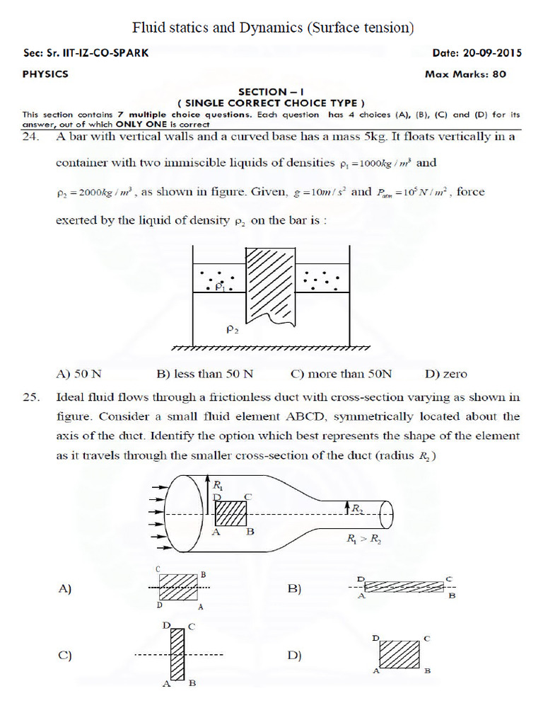29. The thrust exerted by a liquid at the bottom of a container (in absence of atmospheric
