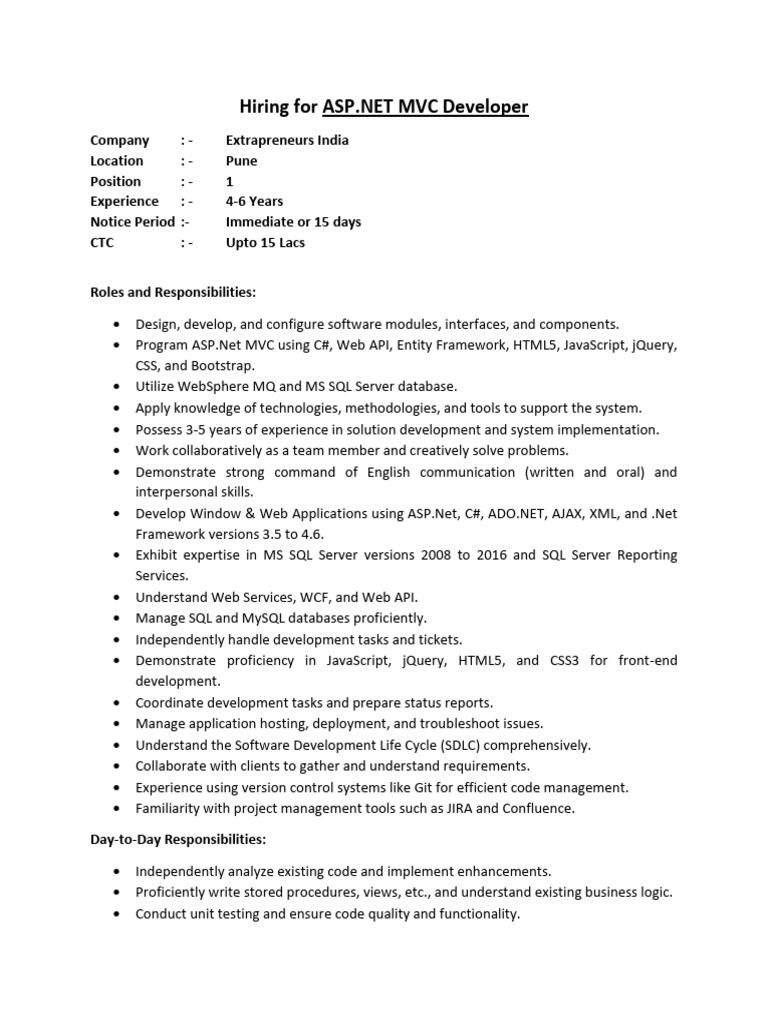 • Program ASP.Net MVC using C#, Web API, Entity Framework, HTML5, JavaScript, jQuery,