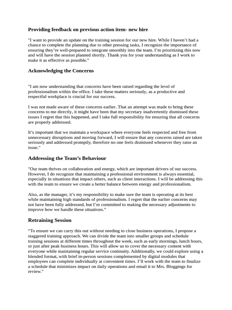 —whether it’s workplace behavior, client interactions, or project challenges. This will ensure