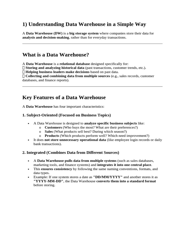 A Data Warehouse pulls data from multiple systems (such as sales databases,