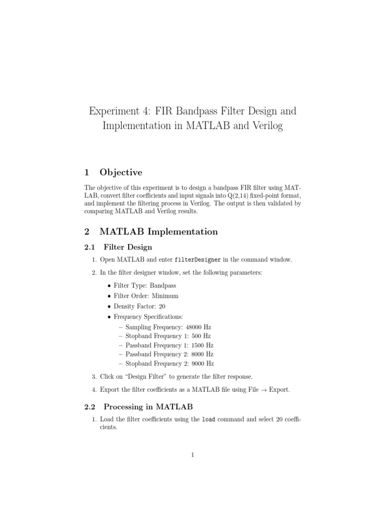 The objective of this experiment is to design a bandpass FIR filter using MAT-