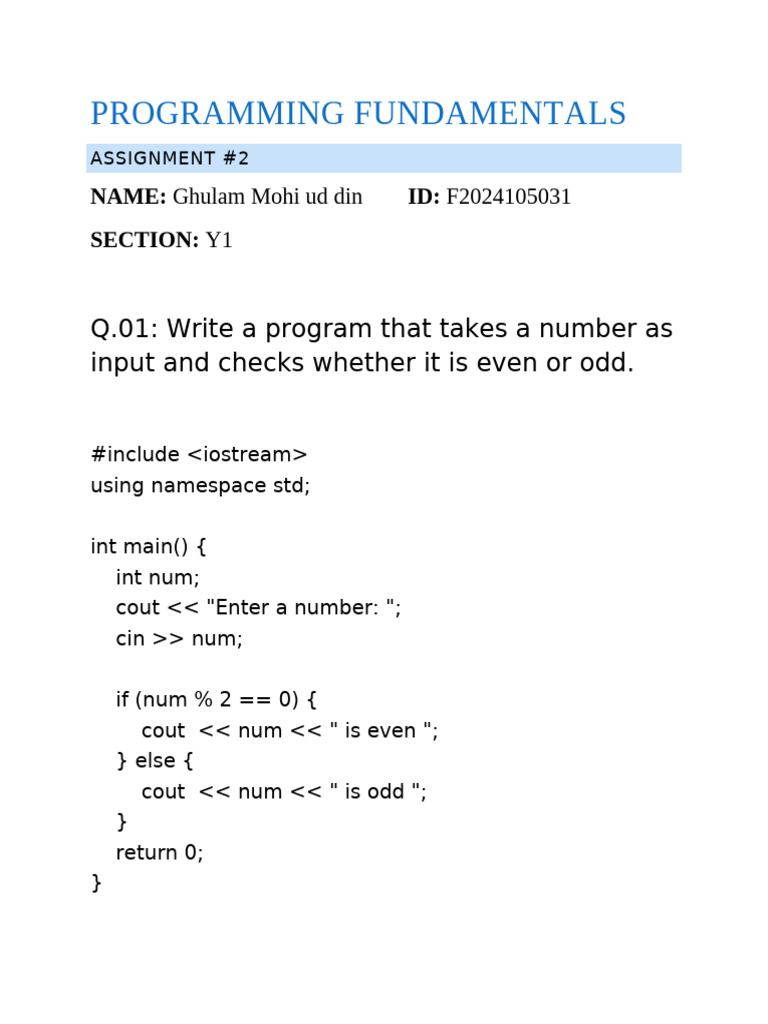 NAME: Ghulam Mohi ud din ID: F2024105031