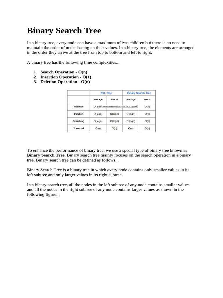Binary Search Tree. Binary search tree mainly focuses on the search operation in a binary