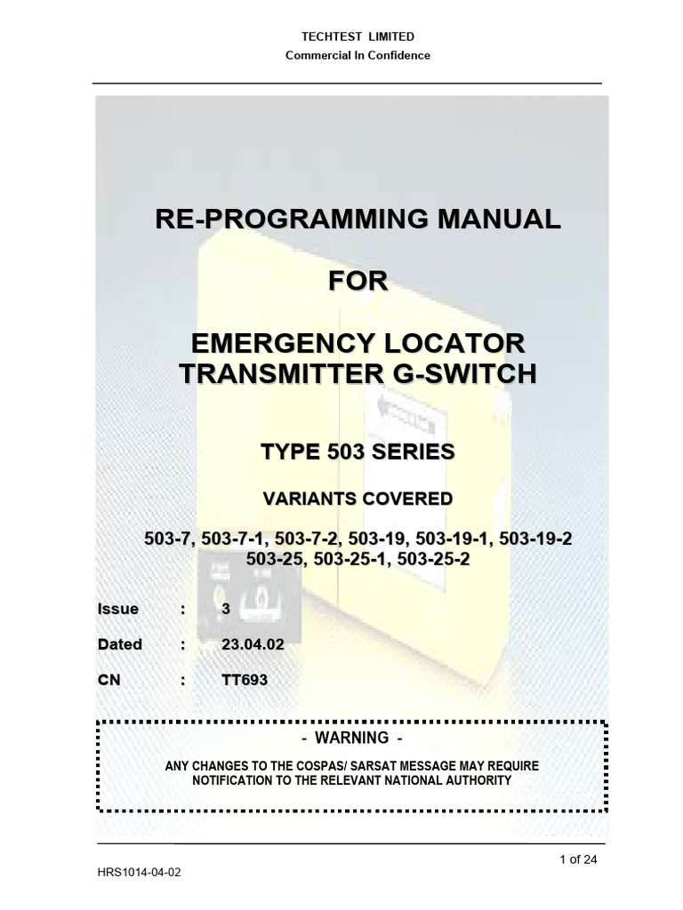 • Instructions on changing (re-programming) the Cospas Sarsat (C/S) message that is