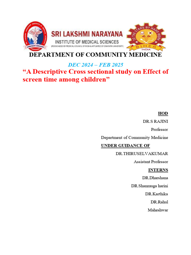 structure and questionnaires regarding EFFECT OF SCREEN TIME